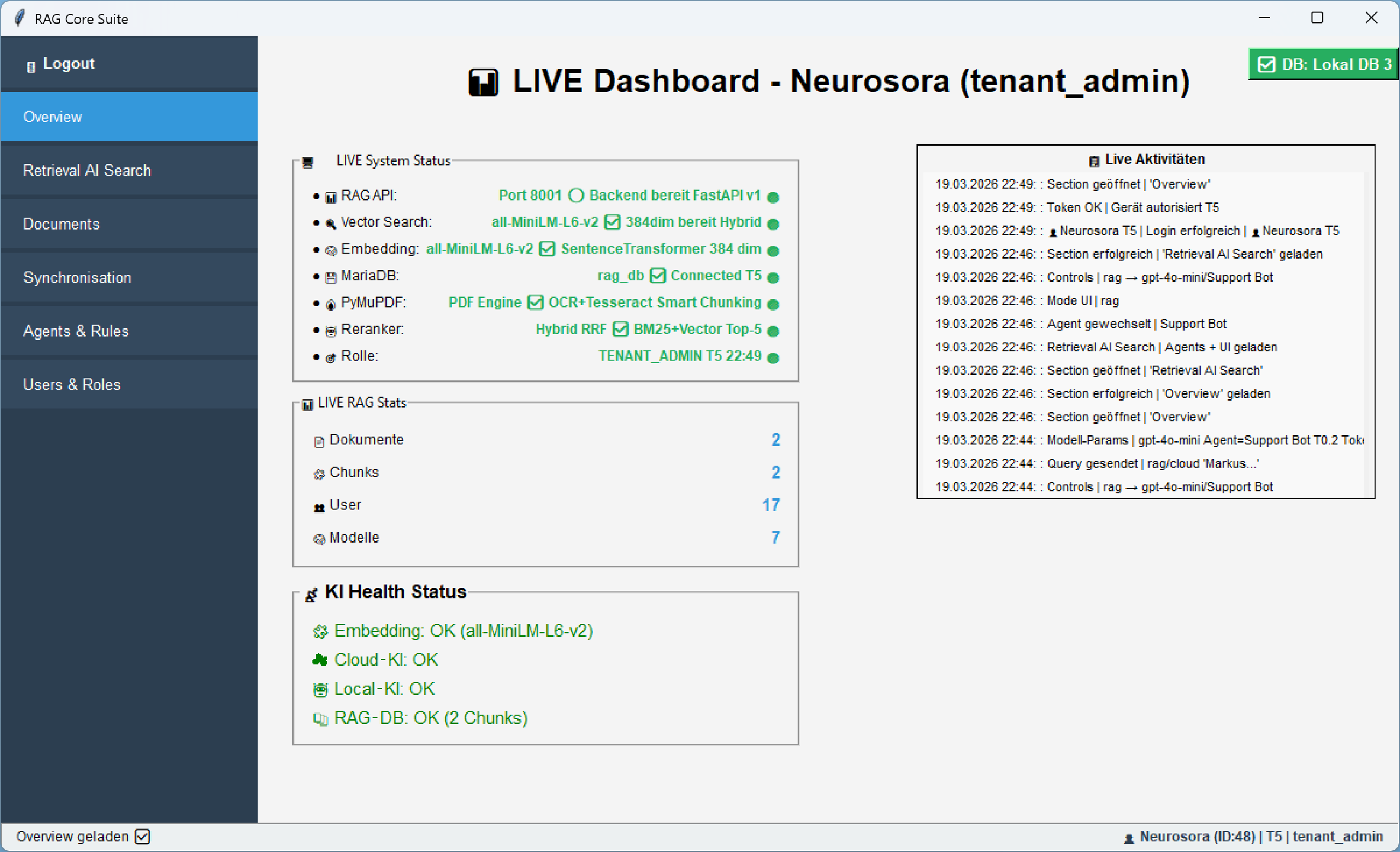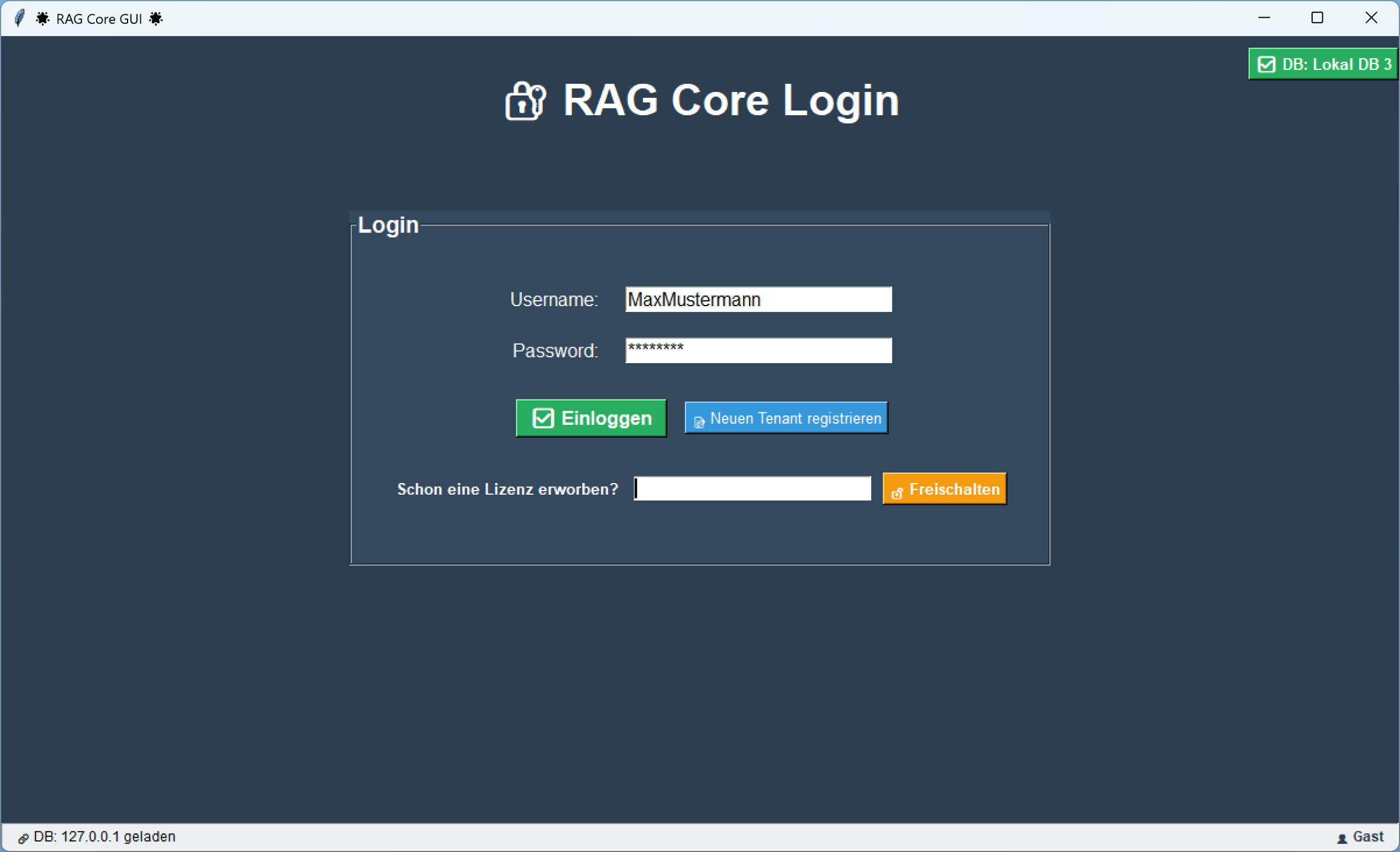 Ist die Datenbankverbindung hergestellt und ein neuer User oder Tenant registriert, kannst du dich mit denselben Zugangsdaten immer wieder einloggen â einmaliges Setup, dauerhafter Zugriff.