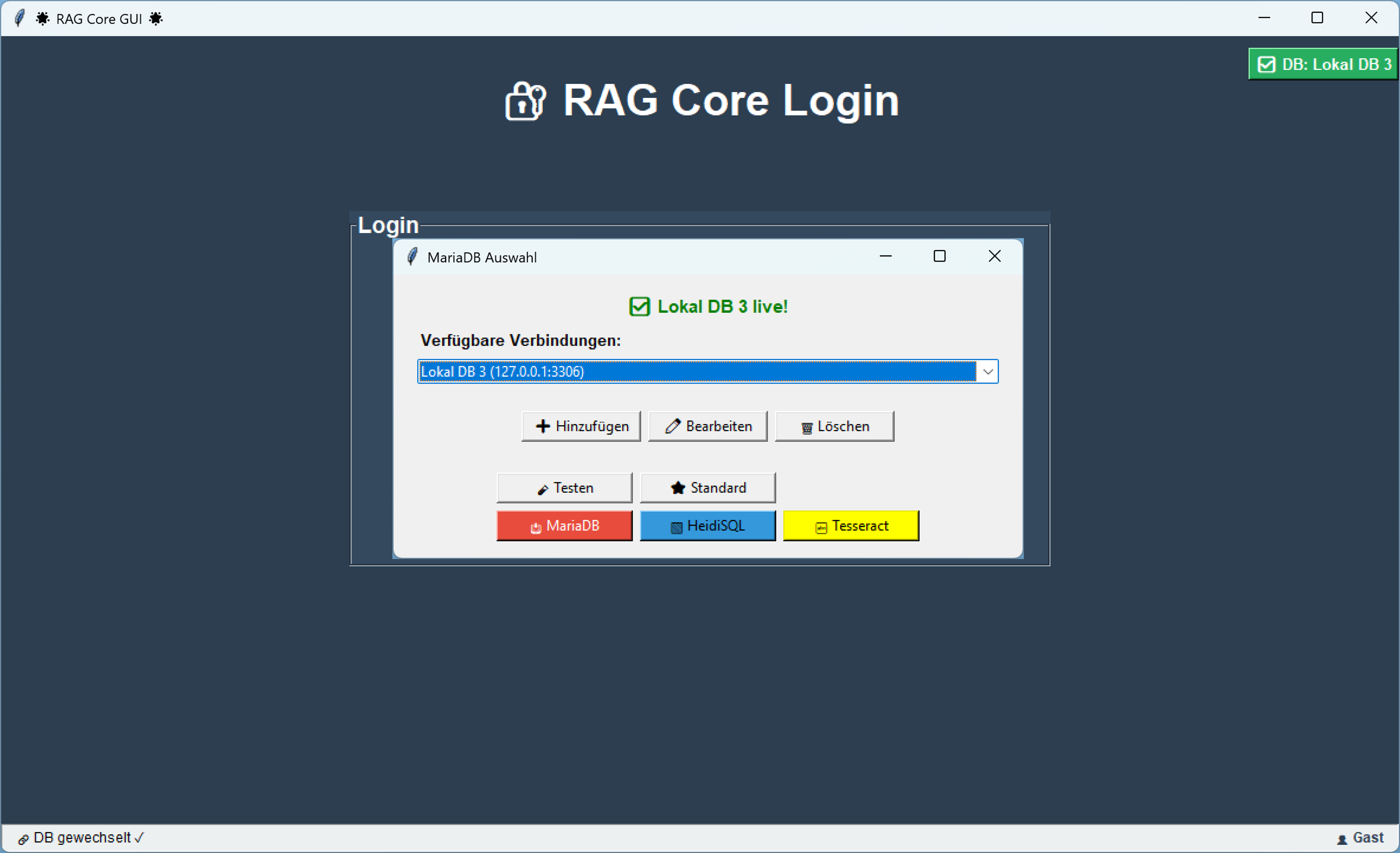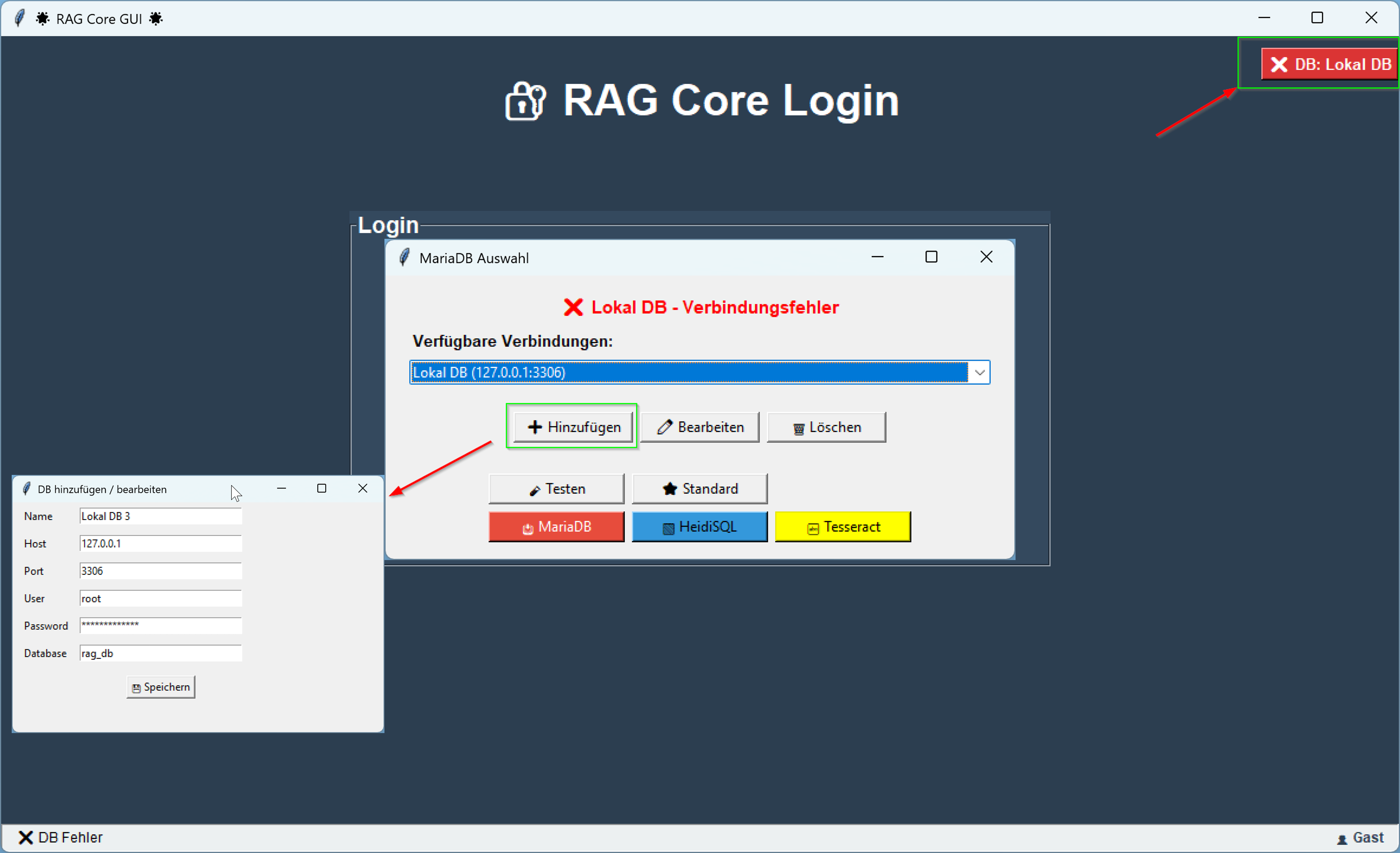 Ăber einen rot markierten Button oben rechts kannst du die MariaDBâDatenbankverbindung konfigurieren â nachdem du MariaDB lokal installiert und die Zugangsdaten erhalten hast.