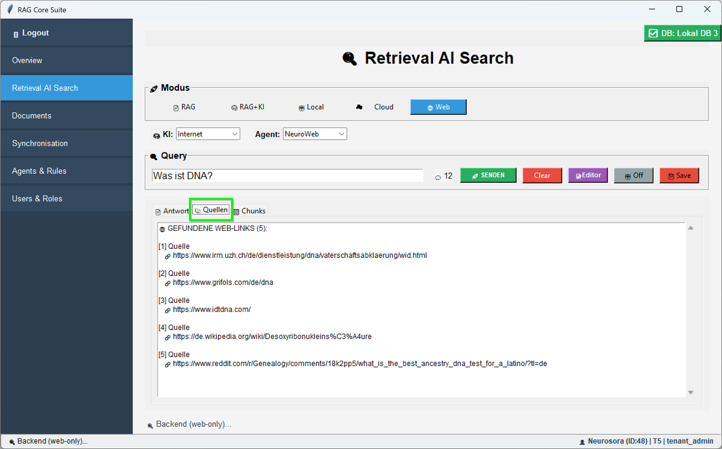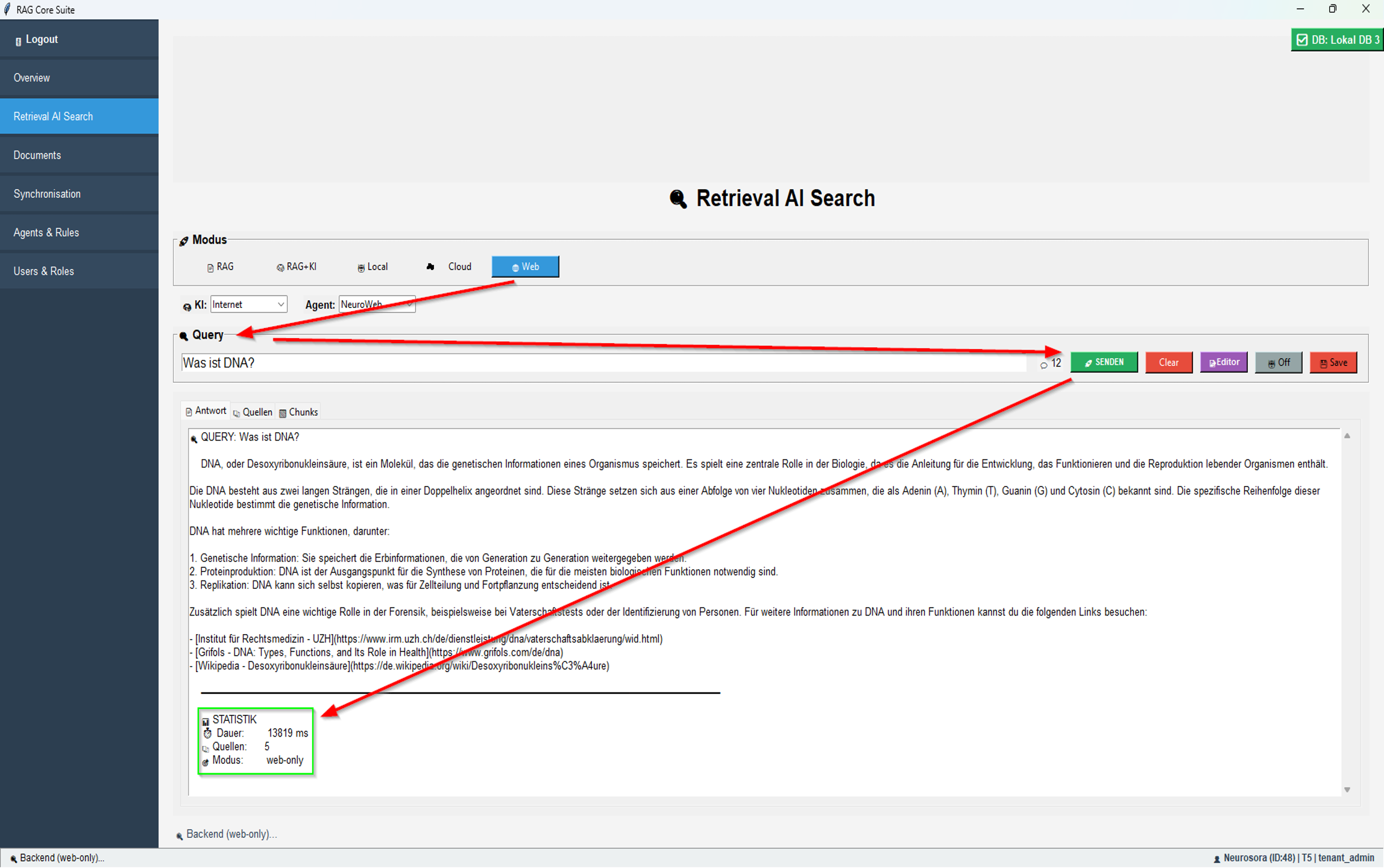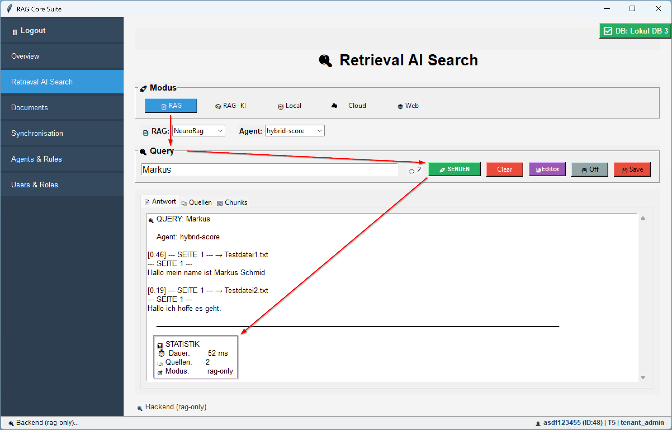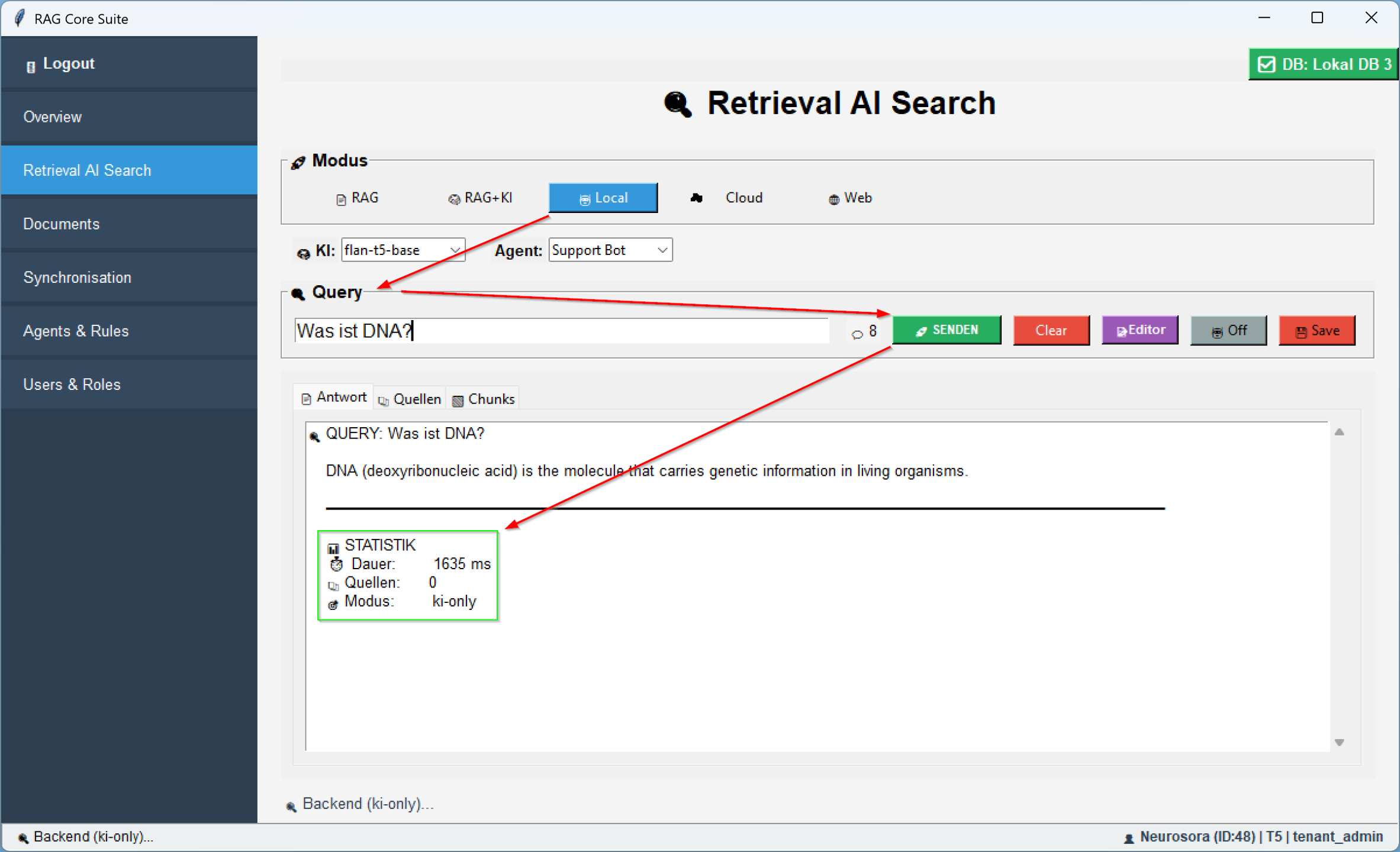 Im Modus RAG + KI nutzt das System deine internen Daten zusammen mit aktuellsten OpenAIâGPTâModellen, um prĂ€zise, kontextreiche Antworten aus deinen Dokumenten zu generieren.