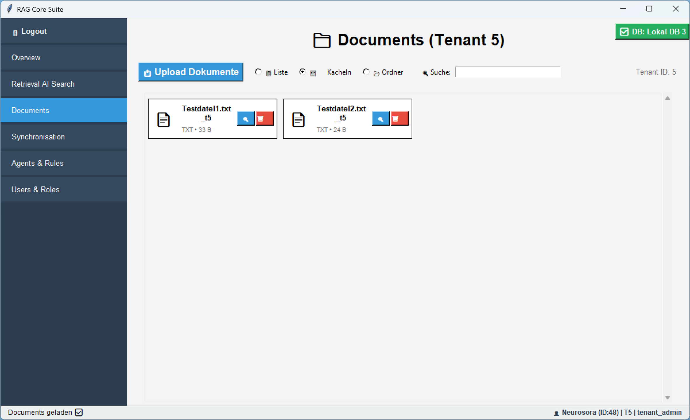 Im Register âDocumentsâ kann die Kachelansicht aktiviert werden, in der alle Dateien als kompakte Kacheln angezeigt werden â ĂŒbersichtlich, klickbar und direkt nutzbar.
