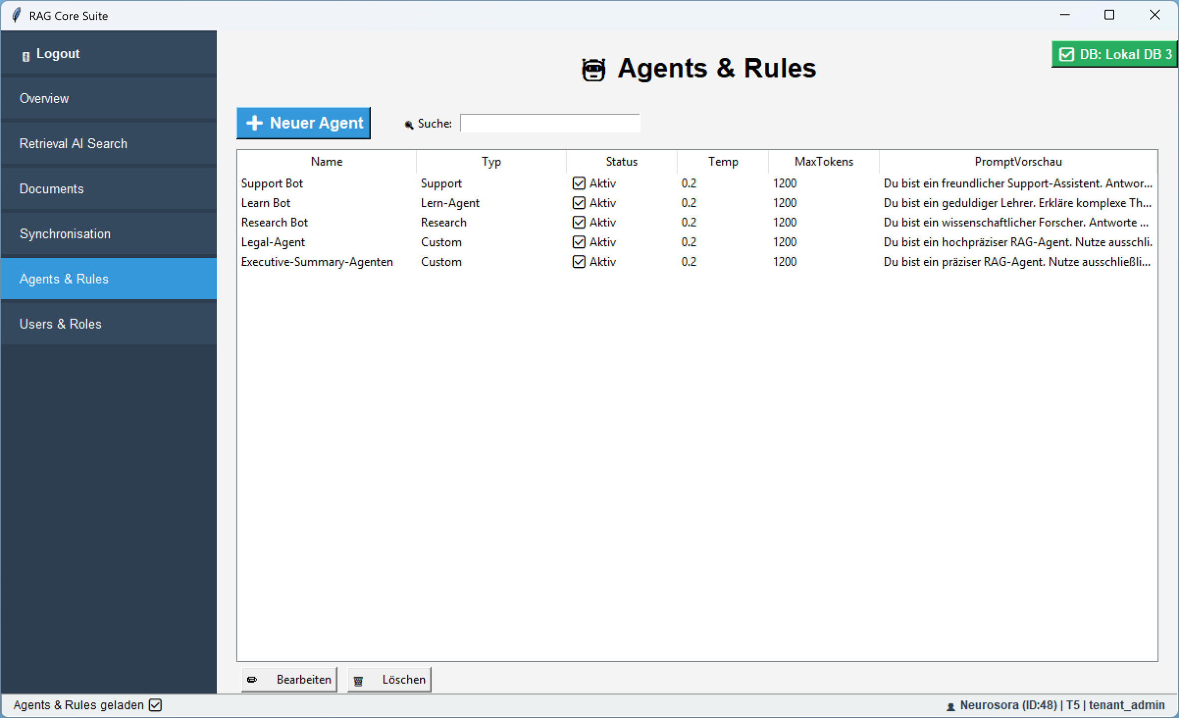 Im Register âAgents & Rulesâ kannst du deine eigenen KIâAgenten anlegen, konfigurieren und in der RetrievalâAIâSearch einsetzen â ganz nach deinen Anforderungen und ArbeitsablĂ€ufen.