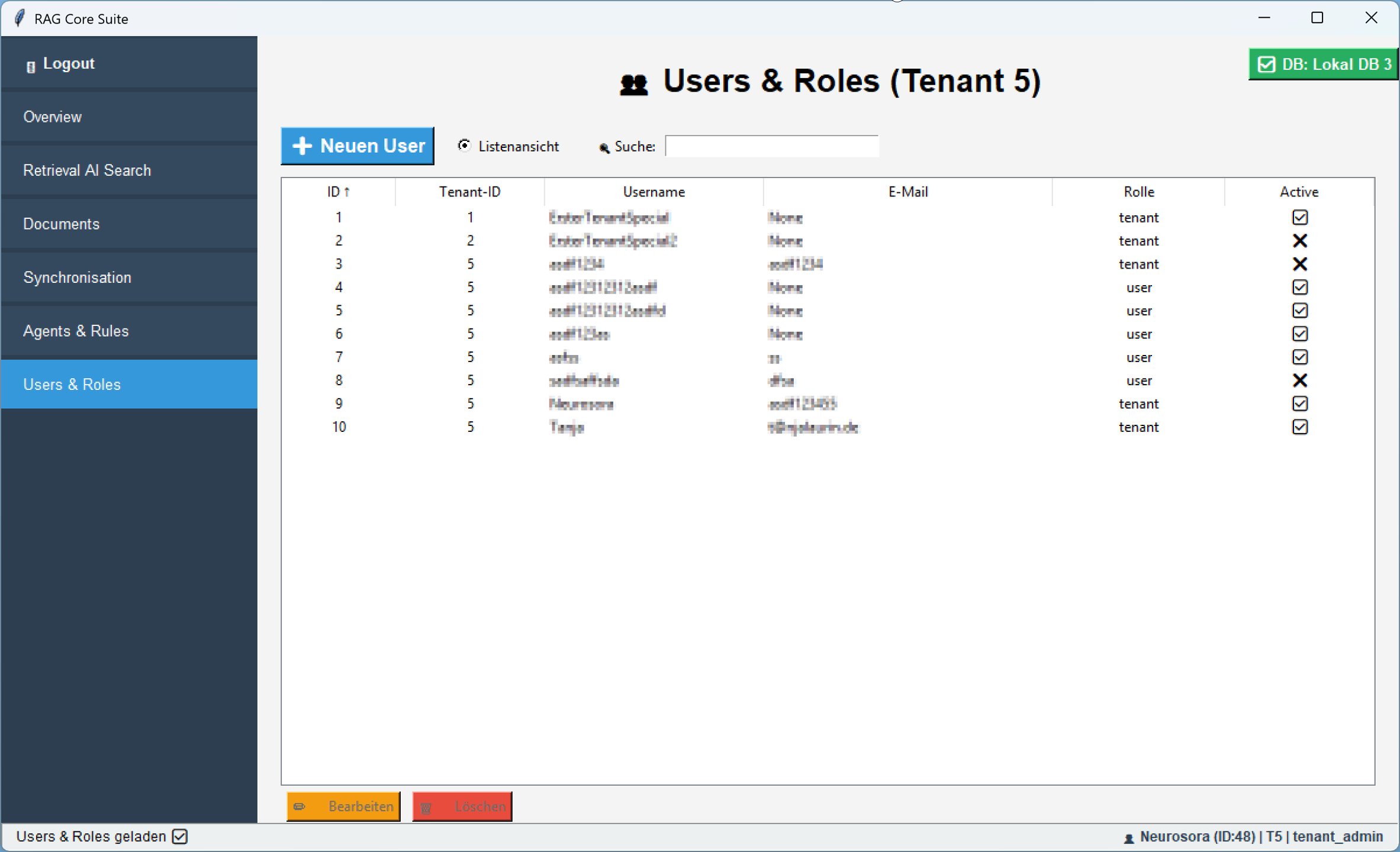 Im Register âUsers & Rulesâ kannst du neue Tenants und User gemÀà deiner LizenzâKontingente anlegen, verwalten und mit deinem System verknĂŒpfen â zentral, ĂŒbersichtlich und sicher.
